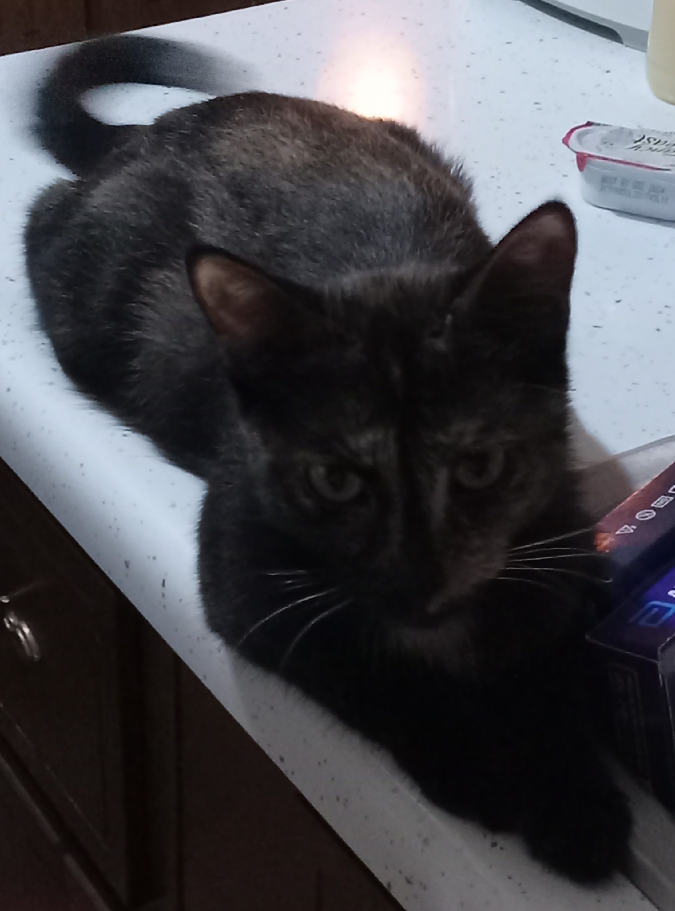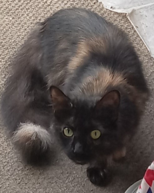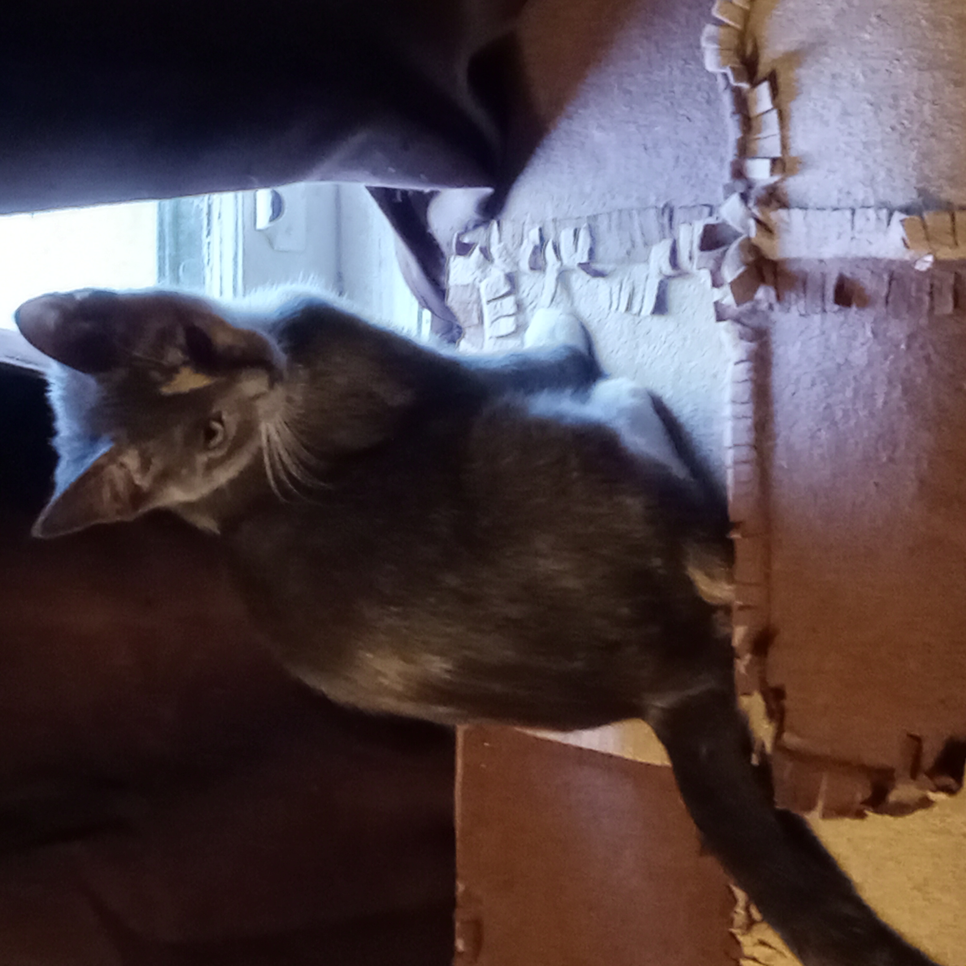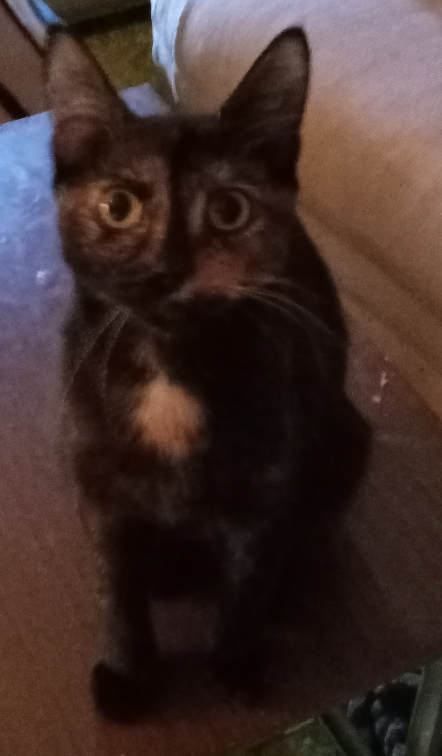 This is the Tortie mother cat. She is vocal and very tame loves being pet.